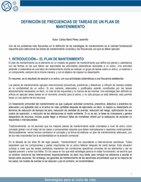 DEFINICIÓN DE LAS FRECUENCIAS DE LAS TAREAS Y ACTIVIDADES DE LOS PLANES DE MANTENIMIENTO